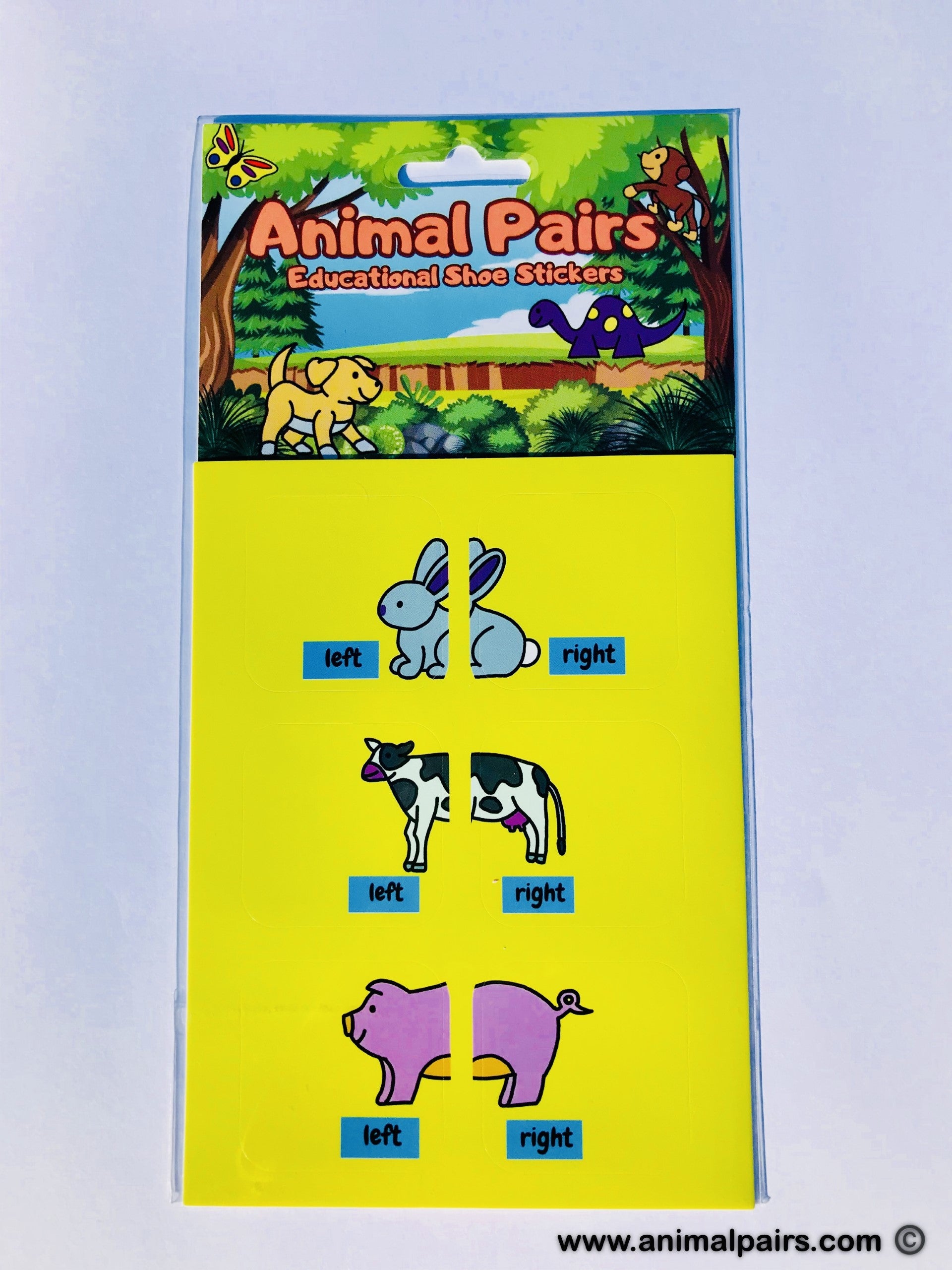 The Farm Pairs pack contains 3 pairs of shoe stickers featuring Rabbit, Cow and Pig